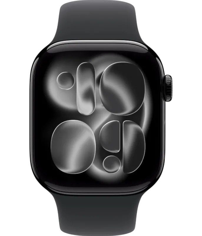 Apple Watch Series 11, 46 мм корпус из алюминия цвета Черный глянец, спортивный ремешок черный
